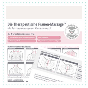 Visueller Ablauf der Behandlungseinheiten im Zyklus und die für die Laien-Massage relevanten Behandlungsschritte, bebildert wie auf dem TFM-Plakat, inkl. Prostata-Massage zur Mitbehandlung des Partners bei schlechtem Spermiogramm.